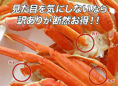 カニを大量入荷すると、どうしても足折れのカニが出てきてしまいます。 しかし、中身はホテルや料理屋に卸すような立派な代物。 多くの芸能人も絶賛しているズワイガニです。